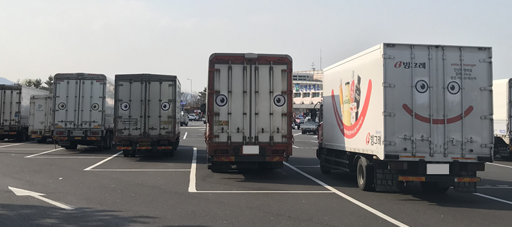 ▲ 화물차 후미에 ‘잠 깨우는 왕눈이’ 스티커를 부착한 모습