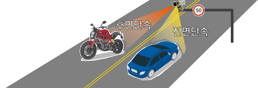 양방향 단속은 무인 단속 장비가 2개 차로 이상을 검지할 수 있는 점에 착안한 것으로, 접근 차량(정방향)은 전면번호판을, 후퇴 차량(역방향)은 후면번호판을 동시에 식별할 수 있어 번호판이 후면에 부착된 이륜차의 과속・신호위반 등 법규 위반 행위도 단속할 수 있다.