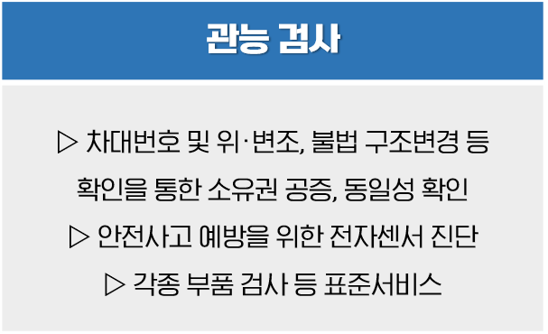 이렇게 드러나지 않는 자동차 증상을 찾고 해결하기 위해 적정 기간마다 자동차 정기검사를 받아야 합니다.