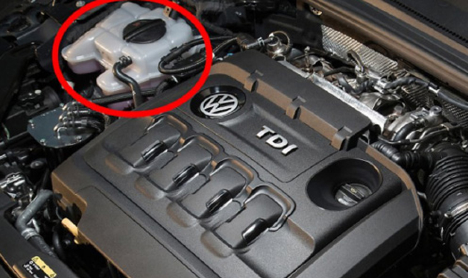 통상적으로 엔진 좌측 상단에 냉각수 보조탱크가 있다.
