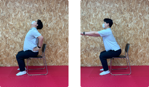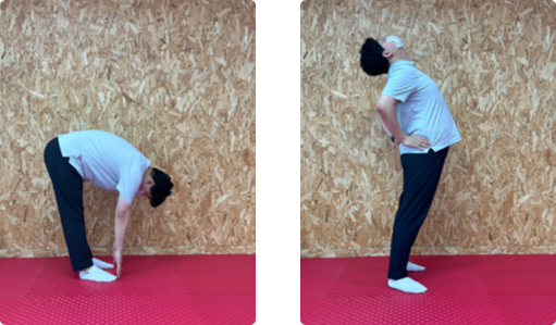 - 허리를 앞으로 굽히는 동작과 뒤로 젖히는 동작에서 잘못된 동작은 허리에 통증을 유발할 수 있으므로 적당한 범위에서 움직여야 한다.
