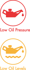 먼저 가장 자주 보게 되는 것은 ‘알라딘 램프’로 오인하는 경고등입니다. 엔진오일의 압력이 부족하다는 뜻입니다. 엔진 곳곳으로 전달되어야 할 엔진오일이 잘 순환되지 않는다는 의미입니다. 대표적인 원인은 ‘엔진오일 부족’입니다. 엔진 자체에서 오일을 소모하거나, 누유 등의 원인으로 점등될 수 있으며 엔진오일이 부족한 상태에서 계속 운행하면 엔진 전체를 교환해야 하는 큰 고장을 일으킬 수 있기에 대부분의 차량은 노랑에서 빨강으로 단계를 두어 운전자에게 알립니다. ‘아직 노란색 경고등이니 더 운행해도 된다는 뜻’이 아닌, 빨간색으로 바뀌면 ‘당장 운행을 멈춰야 한다’는 경고의 의미이니 되도록이면 빨리 정비소를 방문해야 합니다.