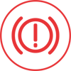 회사마다 약간의 모양차이는 있습니다만, 괄호 안에 동그라미가 들어있는 모양의 경고등은 ‘브레이크’를 뜻합니다. 사이드 브레이크가 걸려있거나 브레이크 오일에 문제가 있다는 의미입니다. 브레이크 패드가 마모되어 디스크와 패드 사이가 지나치게 멀어졌거나 누유 등으로 인해 브레이크 오일의 양이 줄어든 경우 점등됩니다. 달리는 것보다 더 중요한 브레이크이기에 엔진오일과 마찬가지로 빠른 정비를 필요로 합니다.